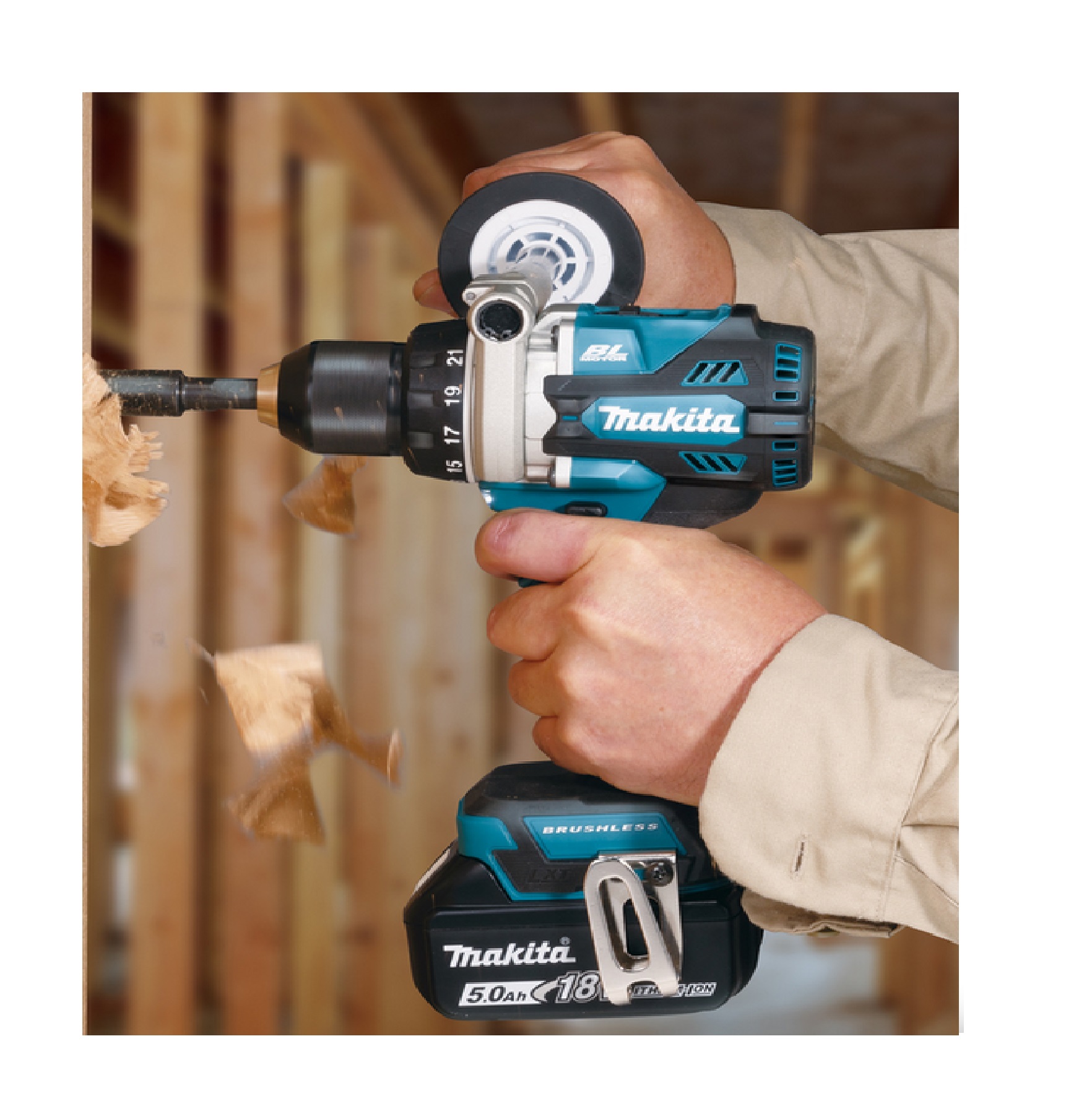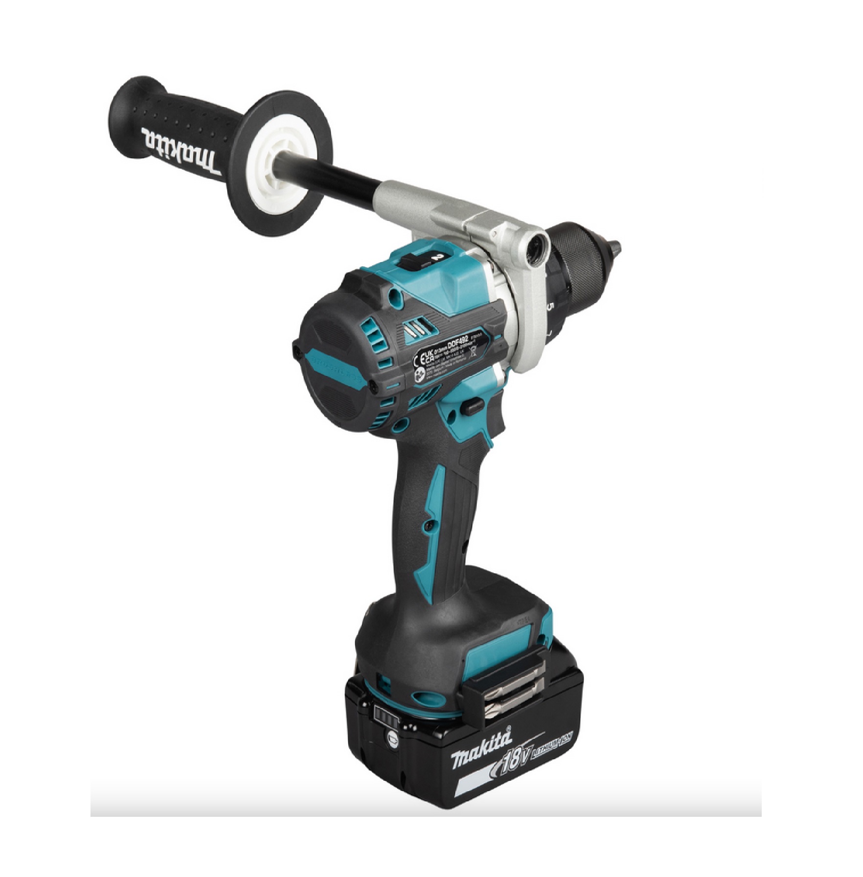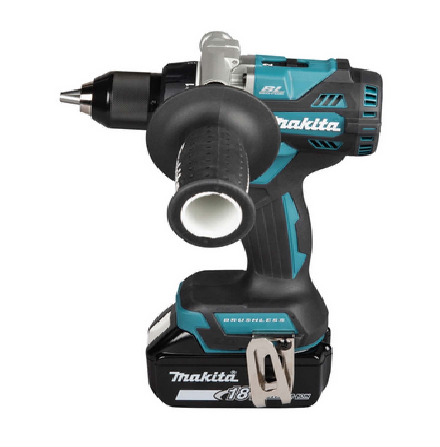 Kraftvoller, sehr kurzer 18V Akku-Bohrschrauber mit einem 2-Gang-Vollmetall-Planetengetriebe und einem bürstenlosen Motor. Mit Metall-Bohrfutter und Seitengriff. Eine ideale Wahl für Anwendungen, welche ein hohes Drehmoment erfordern. Inkl. leuchtstarker Doppel-LED mit Vor- und Nachglimmfunktion.