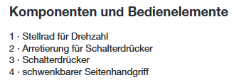 Drehzahl am Stellrad stufenlos einstellbar