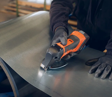 - 221 m Schneidkapazität (in 0,8 mm Blech) mit einer Akku-Ladung (GBA 5 Ah).
