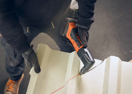 - 66 m Schneidkapazität (in 0,8 mm Blech) mit einer Akku-Ladung (GBA 5 Ah).