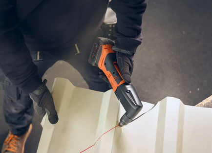 - 66 m Schneidkapazität (in 0,8 mm Blech) mit einer Akku-Ladung (GBA 5 Ah).