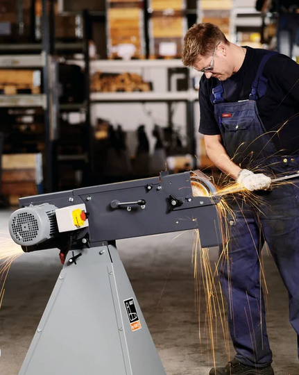 - Höhenverstellbarer Flächenschleiftisch für linearen Flächenschliff.
