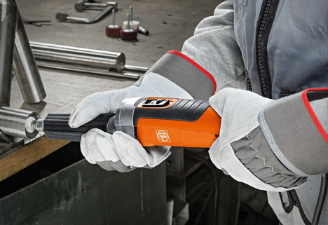 - Langer, schlanker Hals sowie max. Fadenmaß von 210 mm ermöglichen tiefes Eintauchen in Werkstücke (z. B. Innenschleifen von Rohren).