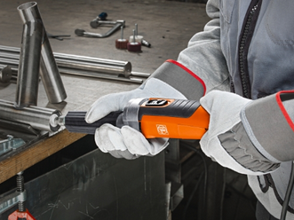 - Langer, schlanker Hals sowie max. Fadenmaß von 210 mm ermöglichen tiefes Eintauchen in Werkstücke (z. B. Innenschleifen von Rohren).