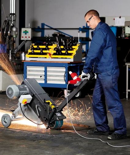 - Höchst effektives Schleifen und Verputzen von Schweißnähten am Boden.