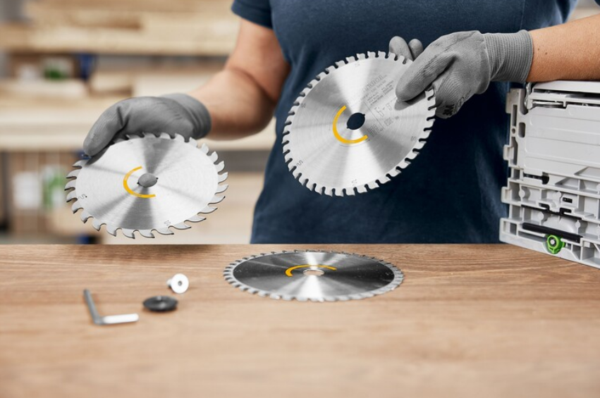 - Schneller Griff zum richtigen Blatt: Mit der Farbcodierung von Festool ist das richtige Sägeblatt schnell gefunden