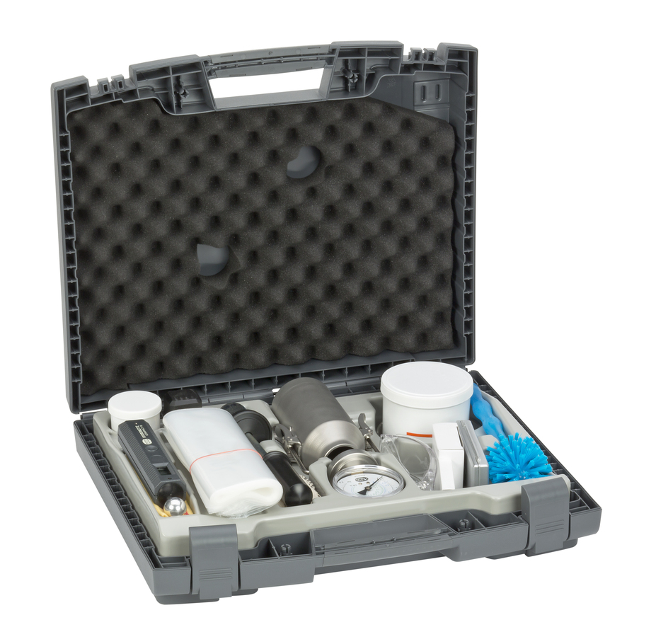 Mit dem praktischen Handmörser kann das Prüfgut direkt in der Druckflasche zerkleinert sowie schnell und feuchtigkeitssichernd aufbereitet werden.