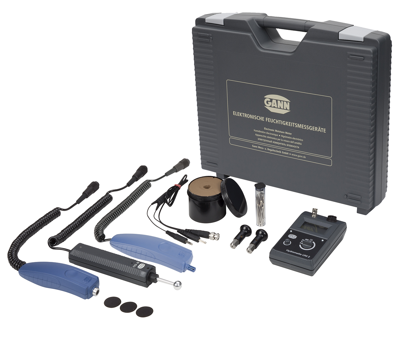 Zusätzlich können mit der UNI 2 noch alle Baufeuchte-Messekeltroden verwendet werden, die auf dem Widerstands-Messprinzip basieren.