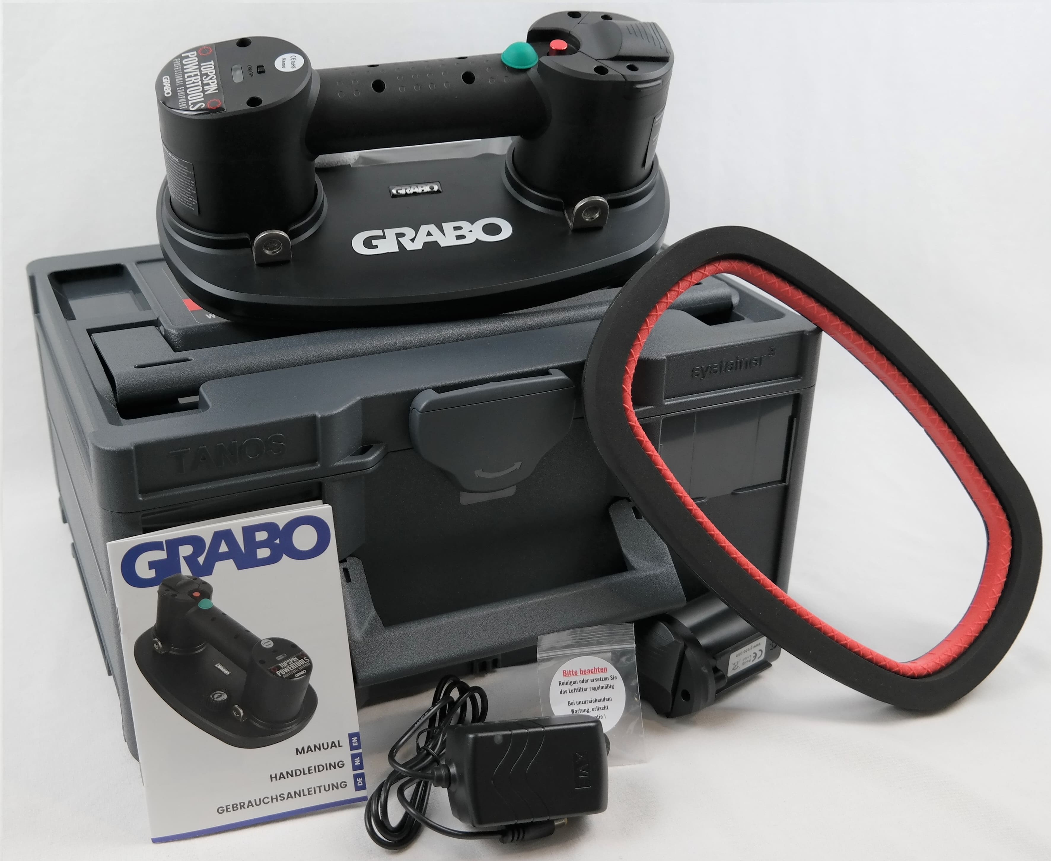 Der Grabo ist der weltweit erste elektrisch akkubetriebene Vakuum-Handsauger. Mit dem Grabo lassen sich Produkte mit glatten aber auch mit porösen und rauen Oberflächen ansaugen und heben. Abhängig von den angesaugten Materialien hat der Grabo eine Hebekraft von bis zu 120 kg.