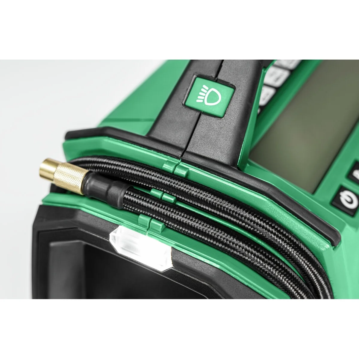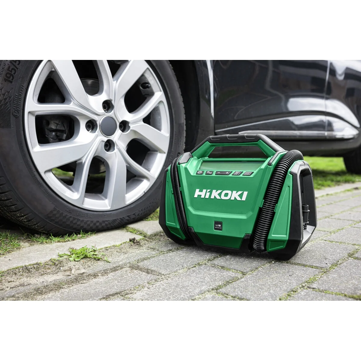 - Betrieb mit HiKOKI 18 V und MV Akkus und mitgeliefertem 12 V Auto-Adapter