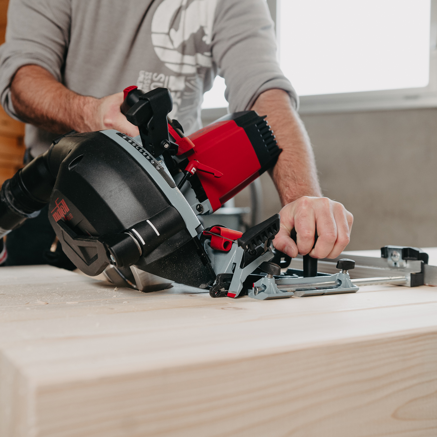 - Mit einem einzigen Knopfdruck lässt sich die NFU von der Kappschiene lösen und freihand oder auf der Führungsschiene verwenden.