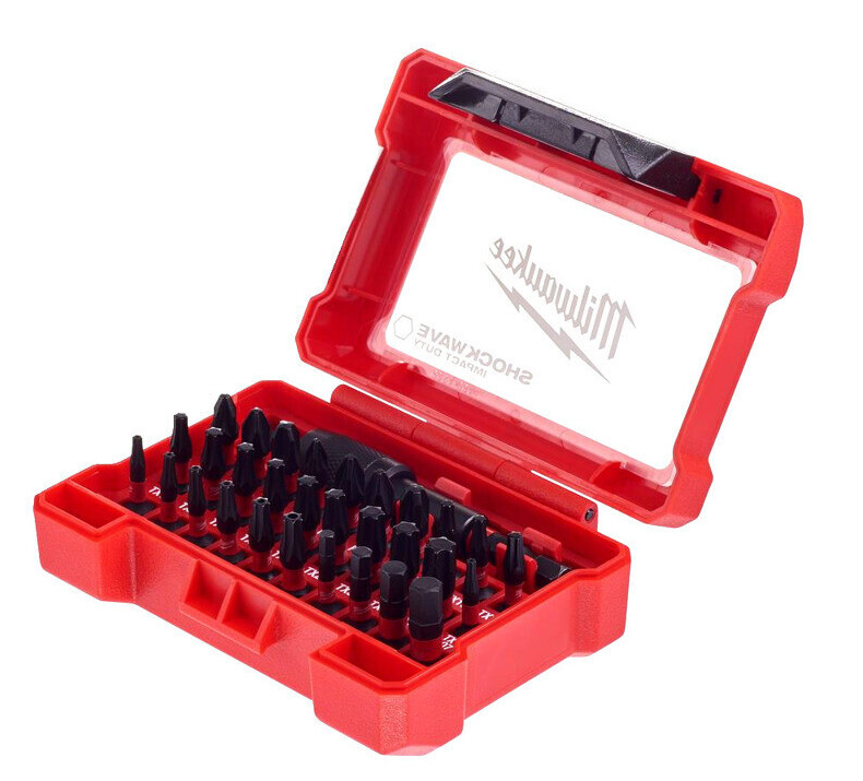 SHOCKWAVE™ schlagfeste Bits: 27 x 25 mm lang: 1 x PH1 / 2 x PH2 / 1 x PH3, 1 x PZ1 / 2 x PZ2 / 1 x PZ3, 2 x TX10 / 2 x TX15 / 3 x TX20 / 2 x TX25 / 2 x TX30 / 1 x TX 40, 1 x TX BO7 / 1 x TX BO9 / 1 x TX BO10 / 1 x TX BO15 / 1 x TX BO 20 / 1 x TX BO25