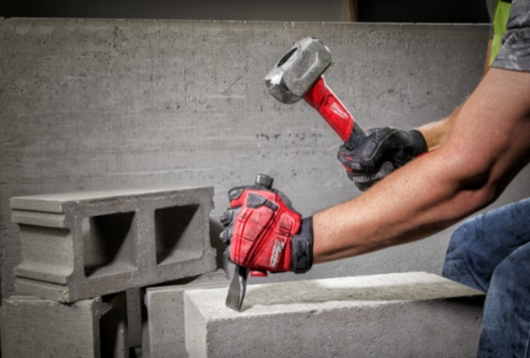 - Geriffelte Bahn für zusätzlichen Halt und minimierte Abrutschgefahr beim Eintreiben von Meißeln oder großen Nägeln, glatte Bahn zur Vermeidung von Beschädigungen an behauenen Oberflächen
