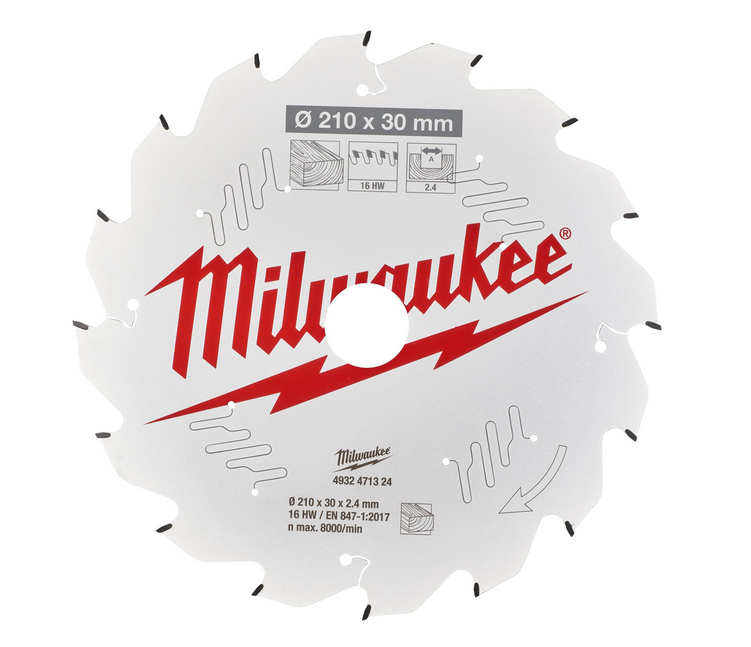 Milwaukee Kreissägeblatt Holz für Tischkreissägen 210/30 mm Z16 Wechselzahn