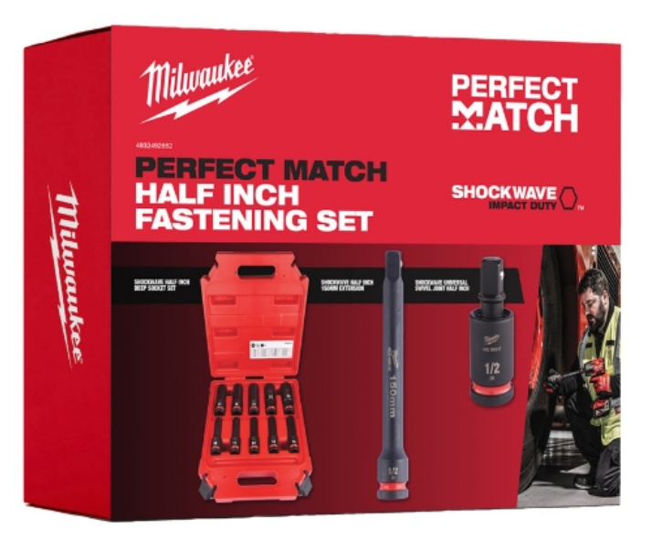 Das Milwaukee SHOCKWAVE 1/2" Schlagnuss-Set 12-teilig umfasst einen Satz von zehn 1/2-Zoll-Tiefschlag-Steckschlüsseleinsätzen, die in einem Aufbewahrungskoffer aus geformtem Kunststoff geliefert werden,