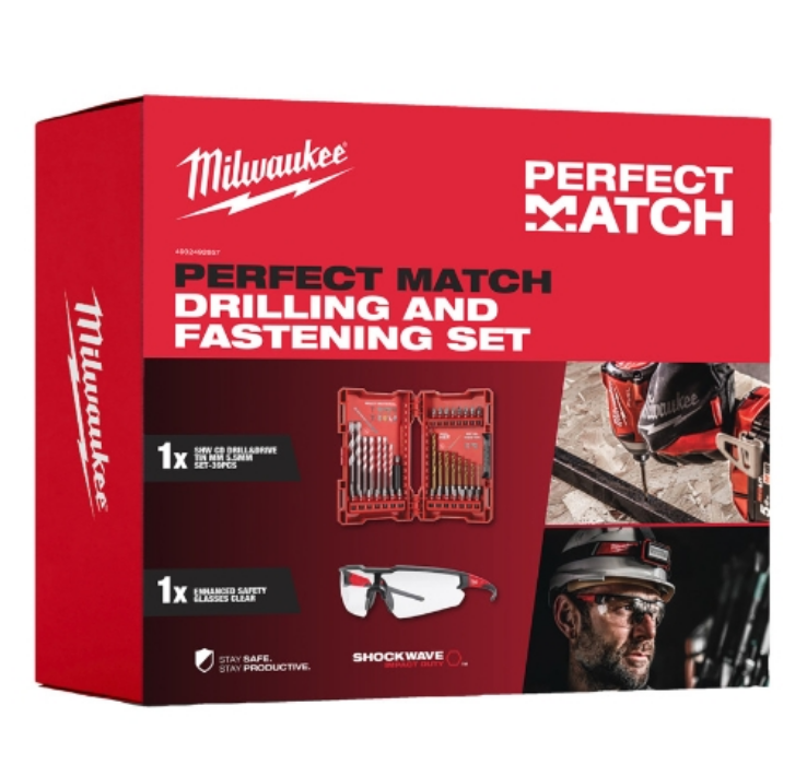 Milwaukee SHOCKWAVE Promoset 39-tlg. + Schutzbrille klar