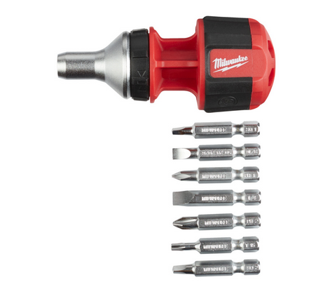 Milwaukee Schrauberdreher mit Ratschenfunktion inkl. 7 Bits PH/PZ/TX/SL Stubby