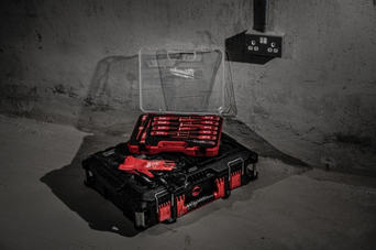 - Lochung zur leichten Fixierung an einer Milwaukee® Werkzeugsicherung bei Arbeiten in der Höhe
