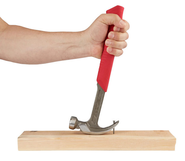 - Gekröpfter Klauenhammer reduziert Schäden beim Nagelziehen.