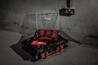 - Lochung zur leichten Fixierung an einer Milwaukee® Werkzeugsicherung bei Arbeiten in der Höhe