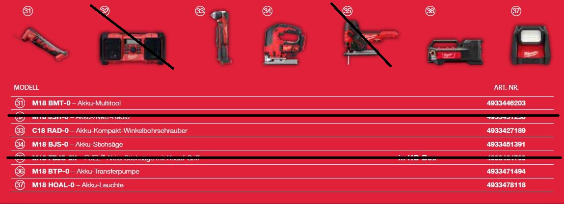 Wählen Sie 3x 18V Geräte aus 38 möglichen Maschinen.