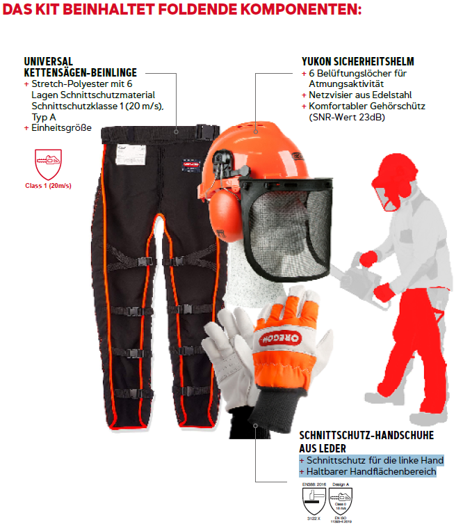 Oregon Schutzausrüstung Set, (Helm, Hose & Handschuhe)